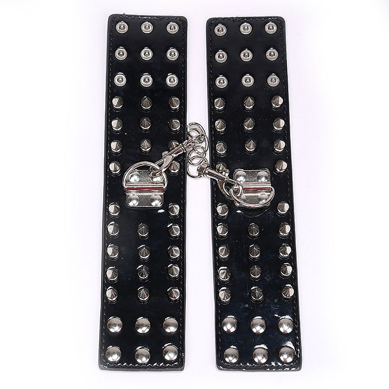 Leve o jogo de poder a outro nível com a Algema Black Spikes. Com acabamento em preto verniz e cravejada de spikes metálicos (pinos pontiagudos), ela oferece um visual agressivo e excitante.